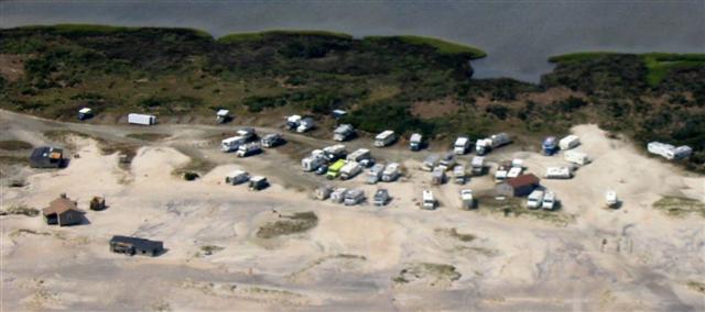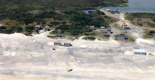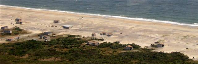 A long view of the Great Island Camp, looking east. The dunes are gone;