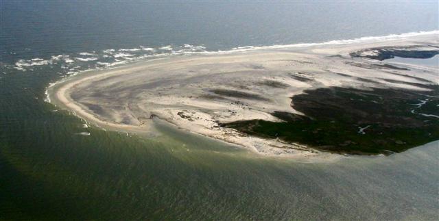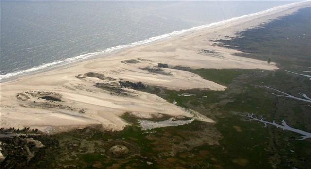 island in motion. Storms move sand from the beach and deposit it on the