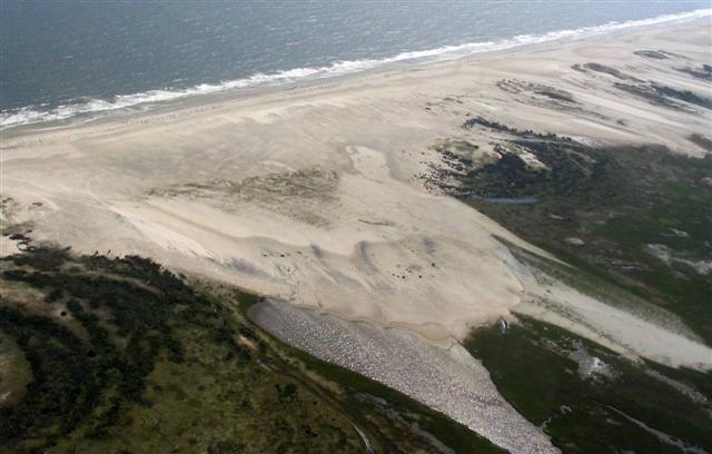 A massive overwash fan near Drum Inlet with the beginnings of a new