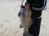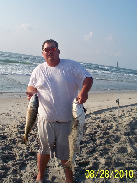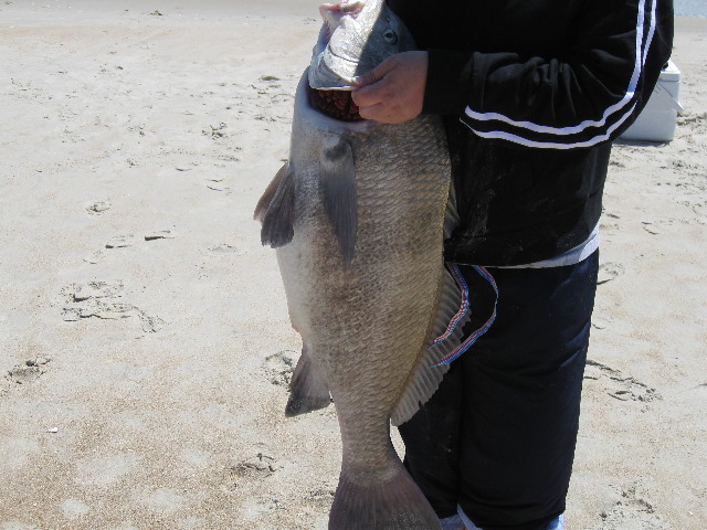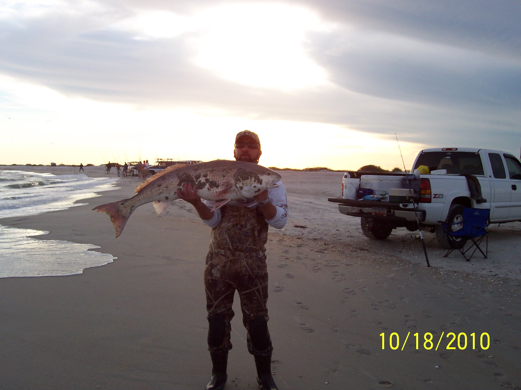![]() ![]() Of course I've got to show off, a fish of a life time for me, so far, but it ain't over!! This one was 42x25 inches, caught 3 more smaller 39,29,29 inches. Wish I was back. It was slow for us Saturday 10/30 and Sunday 10/31, then Sunday night we hit on some big blues and drum. We were on the South Point, waders, wind coming STRAIGHT down the beach from the light house, still trying to get the sand out of my truck door locks and windows. Wind was so bad we only fished standing in the water Monday, too sandy trying to stand on the beach We were using cut blues/mullet on an 8/0 circle hook. I am trying to get another trip before season ends.