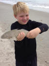 ![]() Caught August 25th at Cape Lookout. 28” red drum (released) was caught on a rising tide (on top of sandbar) using cut blue fish fillet early in the morning. Mike Collins |