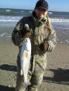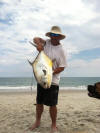 ![]() Here is a beauty I caught Sept 19 on the south end. I have no idea for sure what the weight was, we were guessing over 50 lbs. As for the length, we didn't take the time to measure but it was 40-45". You can let everybody know she was returned to the surf for some other lucky soul to battle. I have surf fished since I was tall enough to throw lead but have never caught anything like that! Have a great fall and terrific fishing! Eric Freeman |