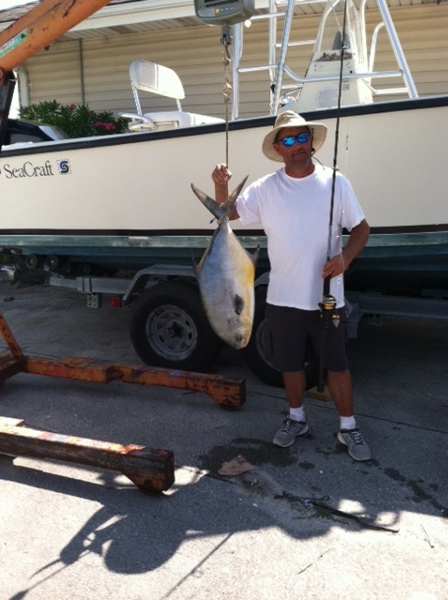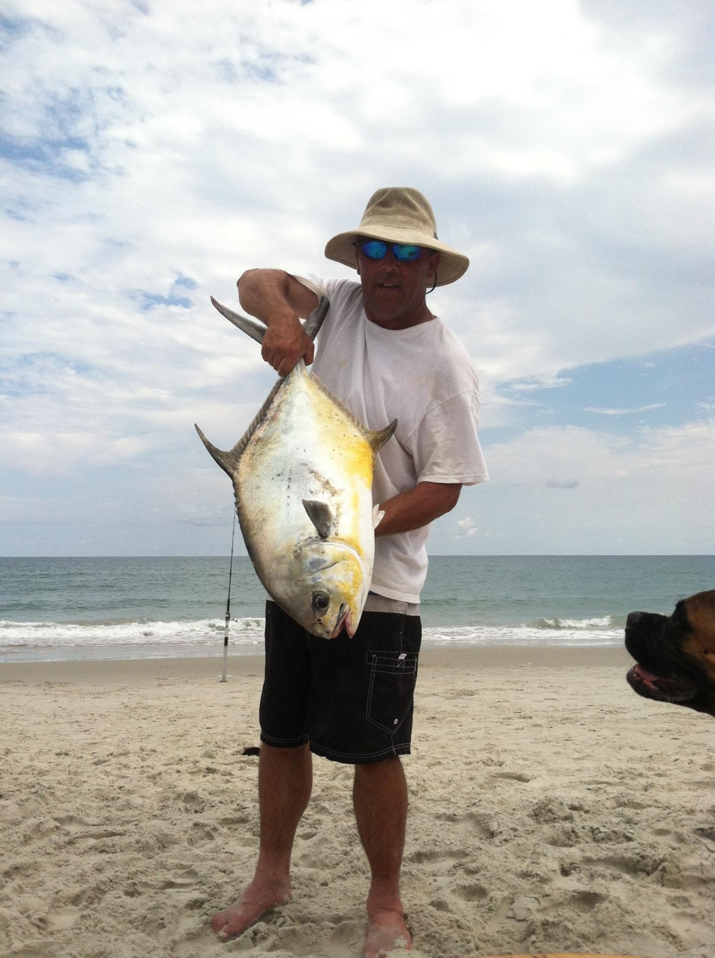 Shawn, Rachel, Troy and Tyler Gregor caught this awesome pompano at Cape Lookout on 8/6/2013! The fight lasted 30 minutes, they thought it was a big blue on cut bait in an area were the sand fleas were heavy... From Fish Reports: My fishing buddy caught a monster pompano! It is 18lbs 35 inches. If it is a pompano, it is the world and state record. We are taking it to Harkers Island tomorrow for official weigh in. I can find any reason it is not a pompano...please let me know if you guys do...wish us let...thanks. Steve Snyder |