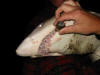 i caught it in the corner of the mouth.................ha, ha. i caught it on